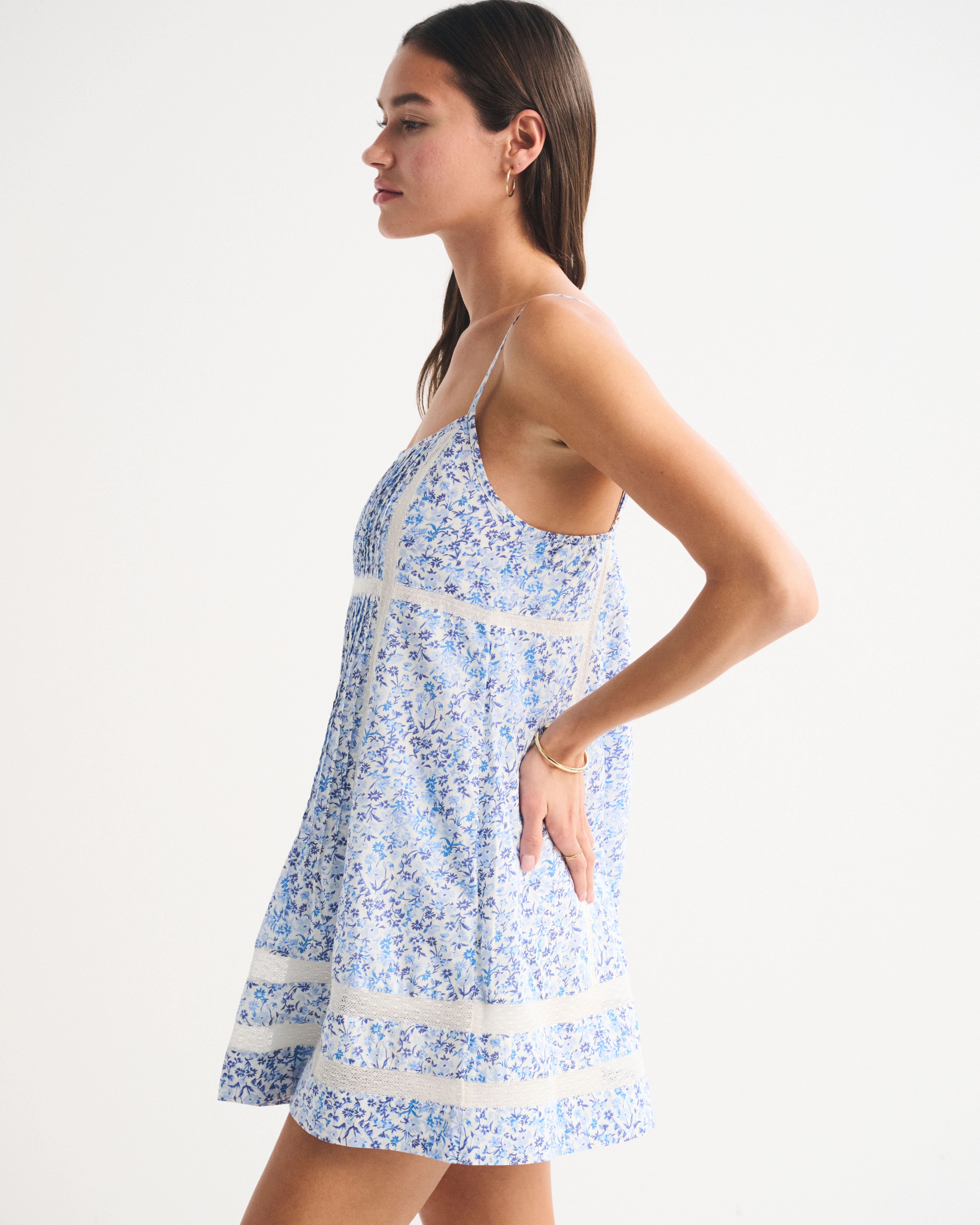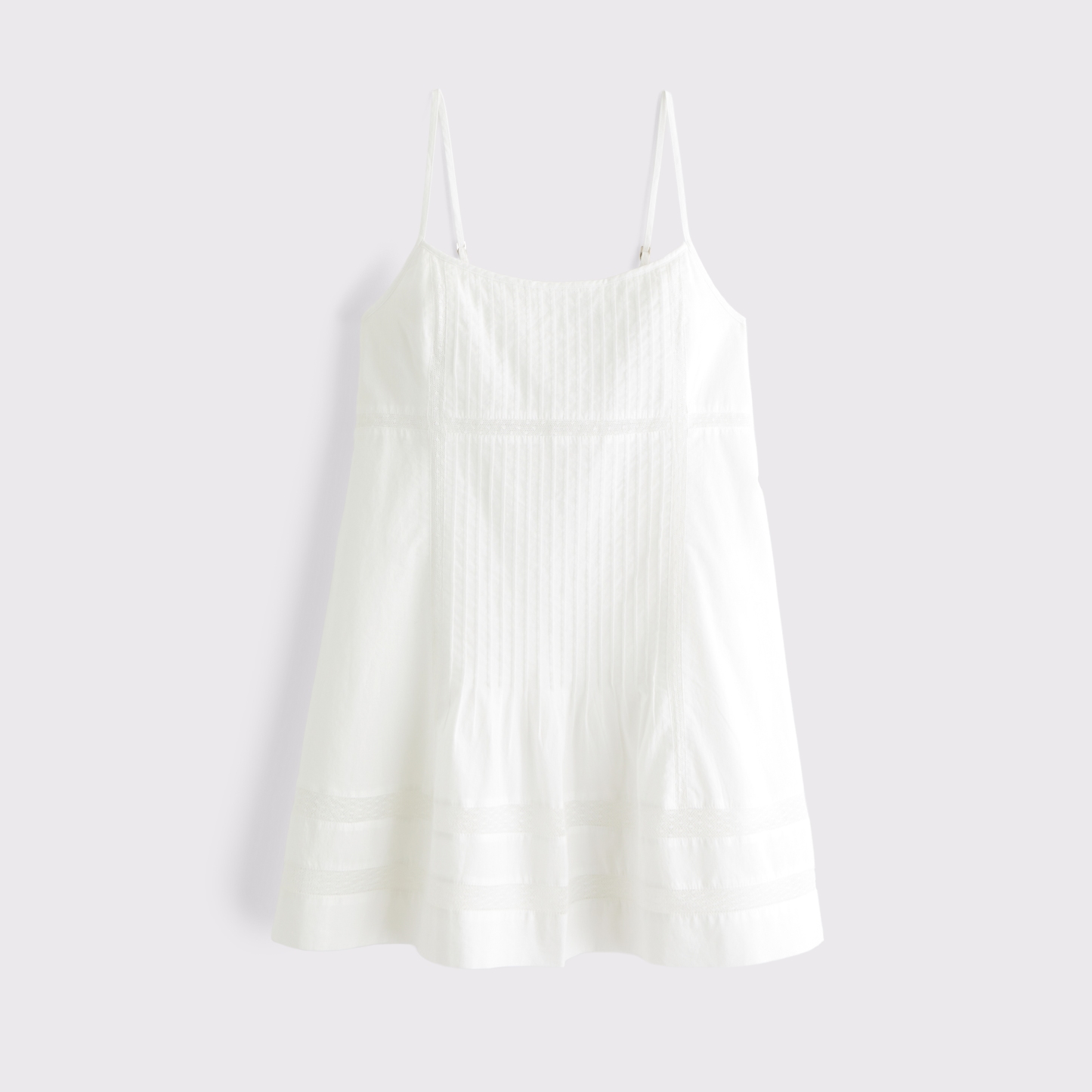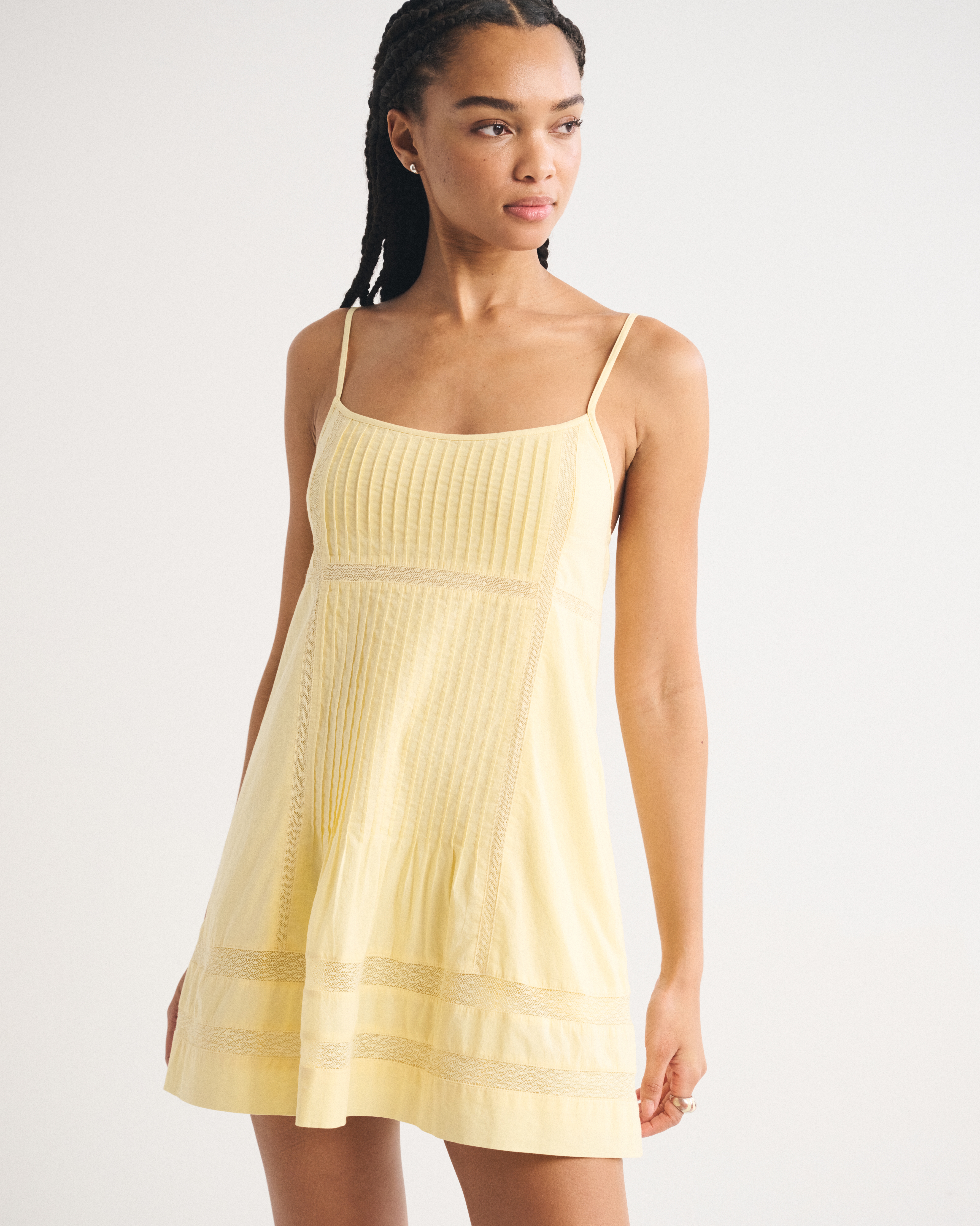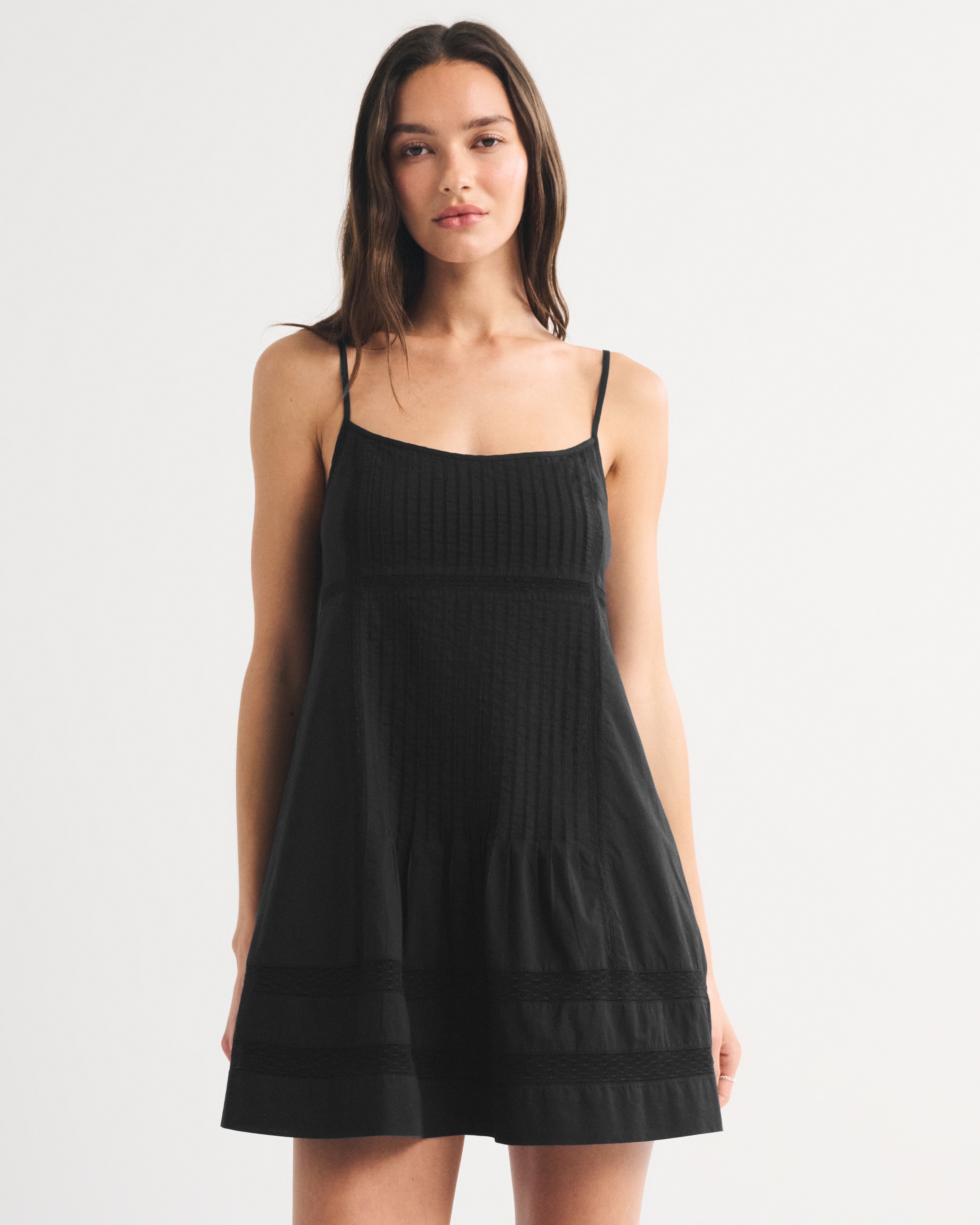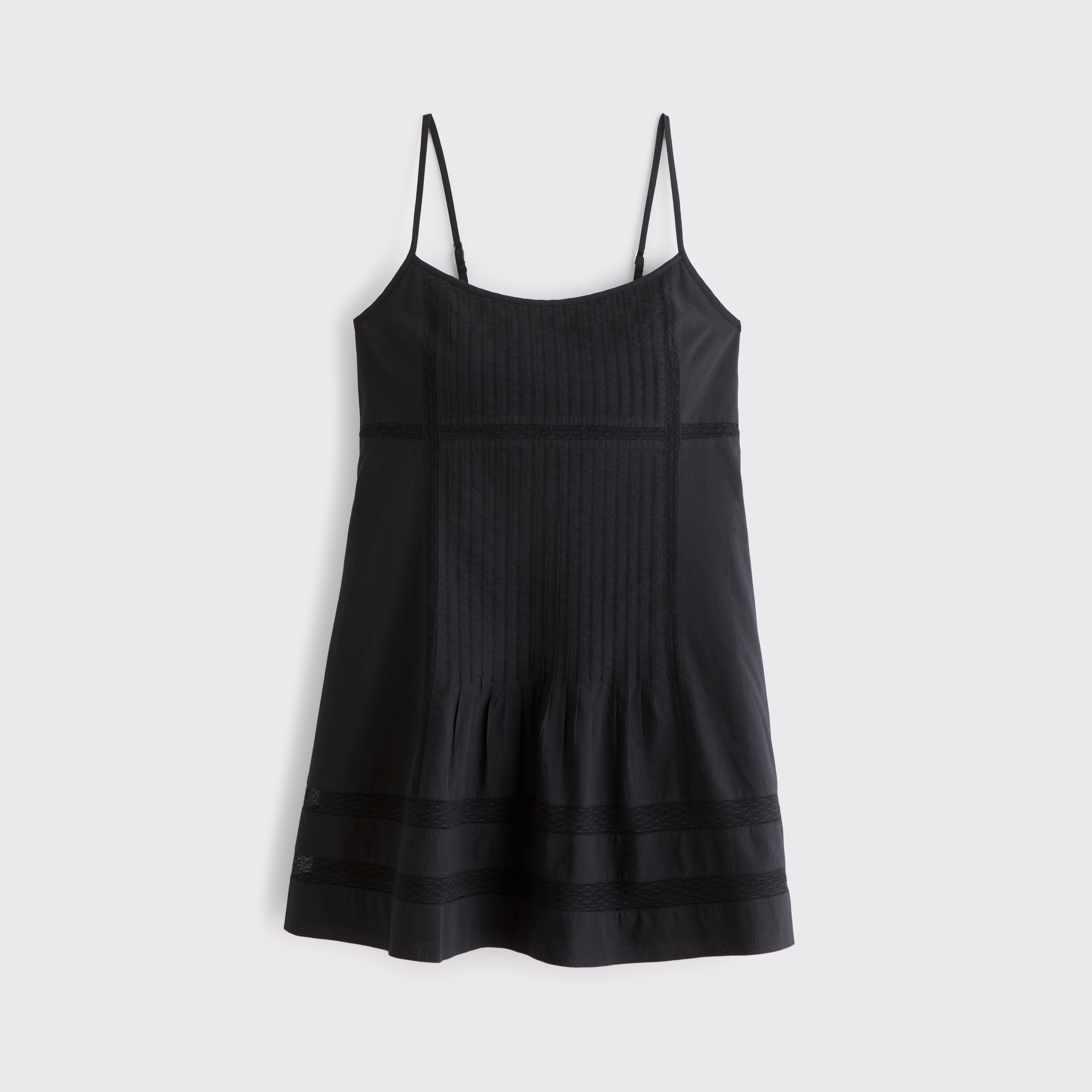 Easy-fitting mini dress in our soft cotton fabric and trapeze silhouette. Features a scoop neckline, seaming details, pockets and a flowy skirt. Imported.