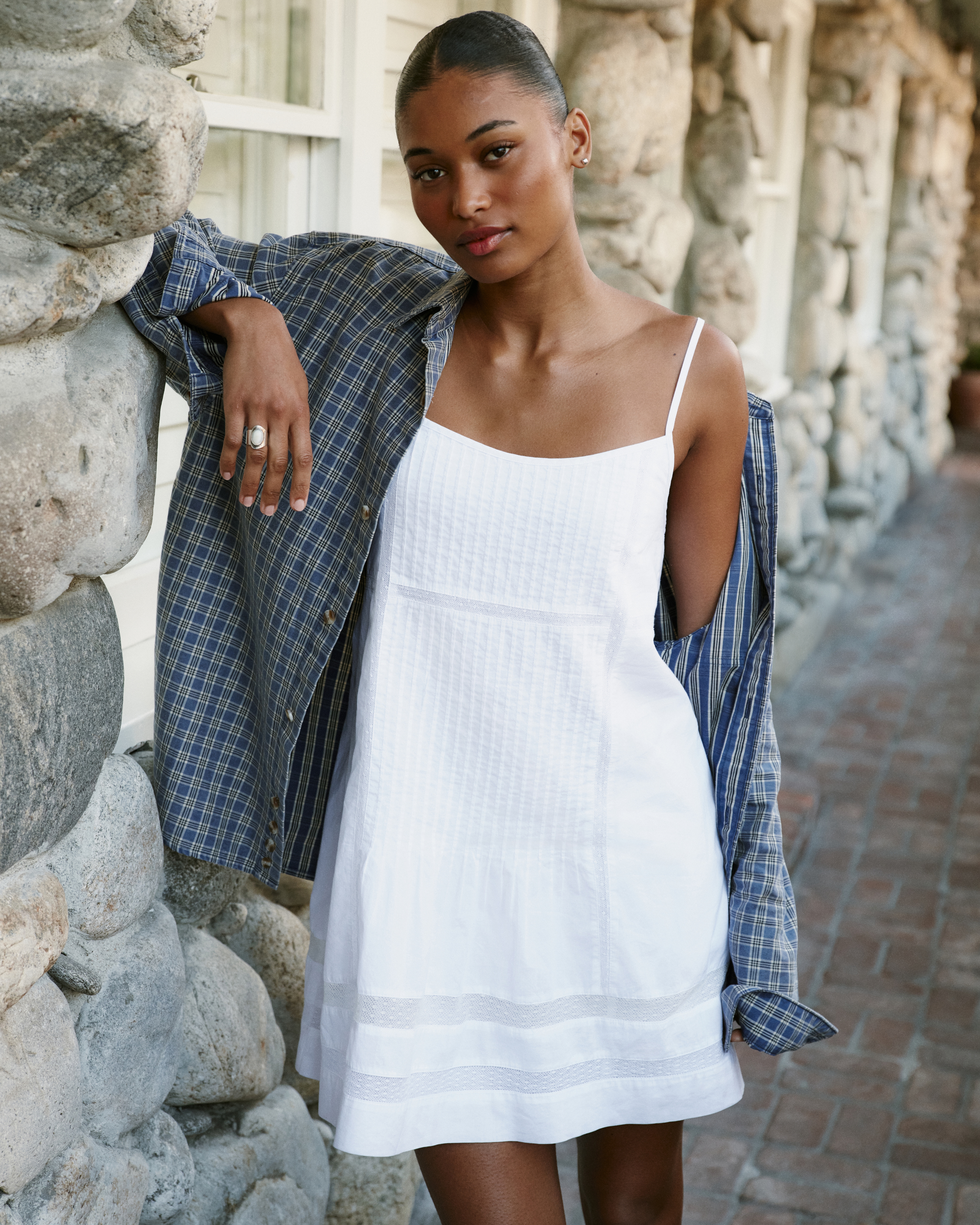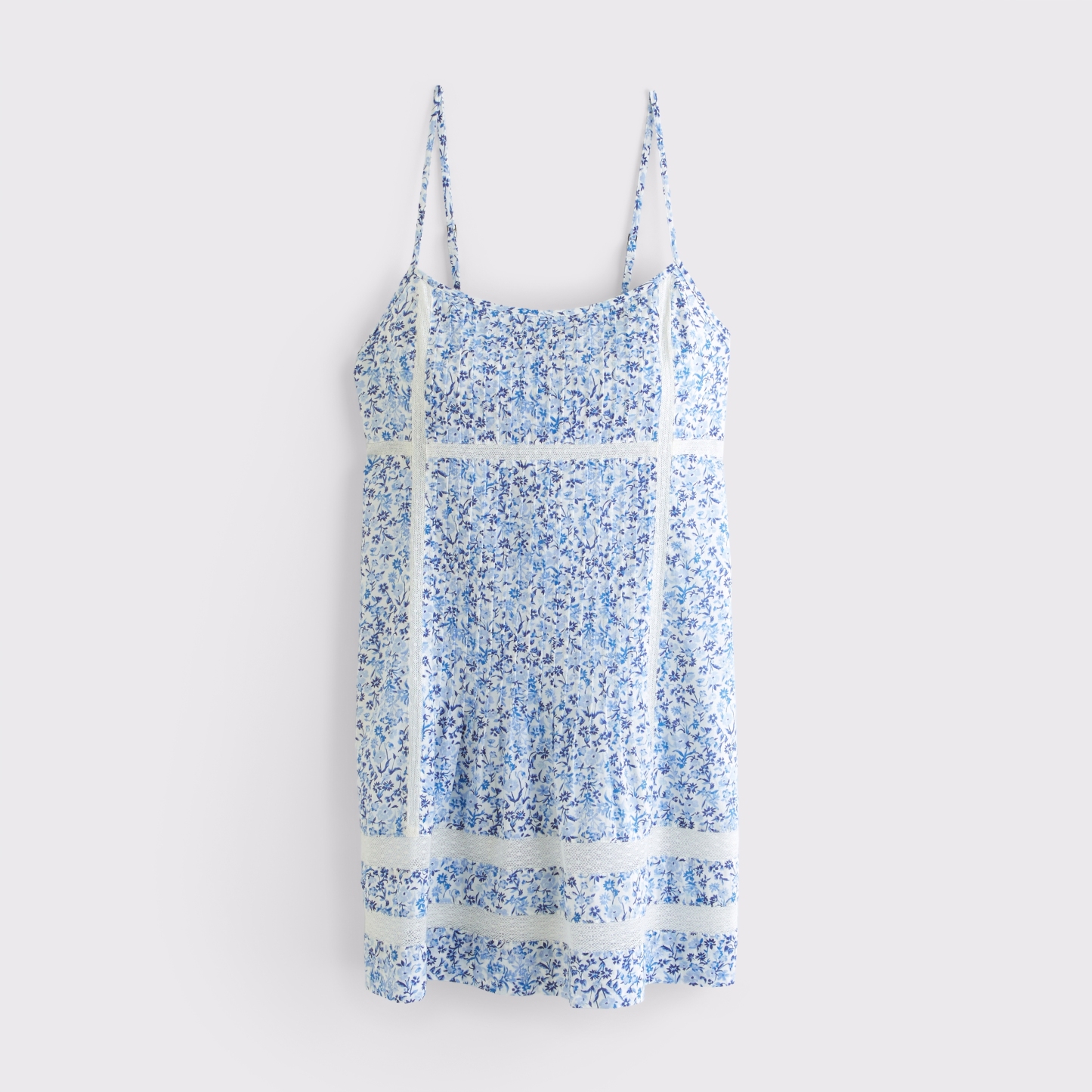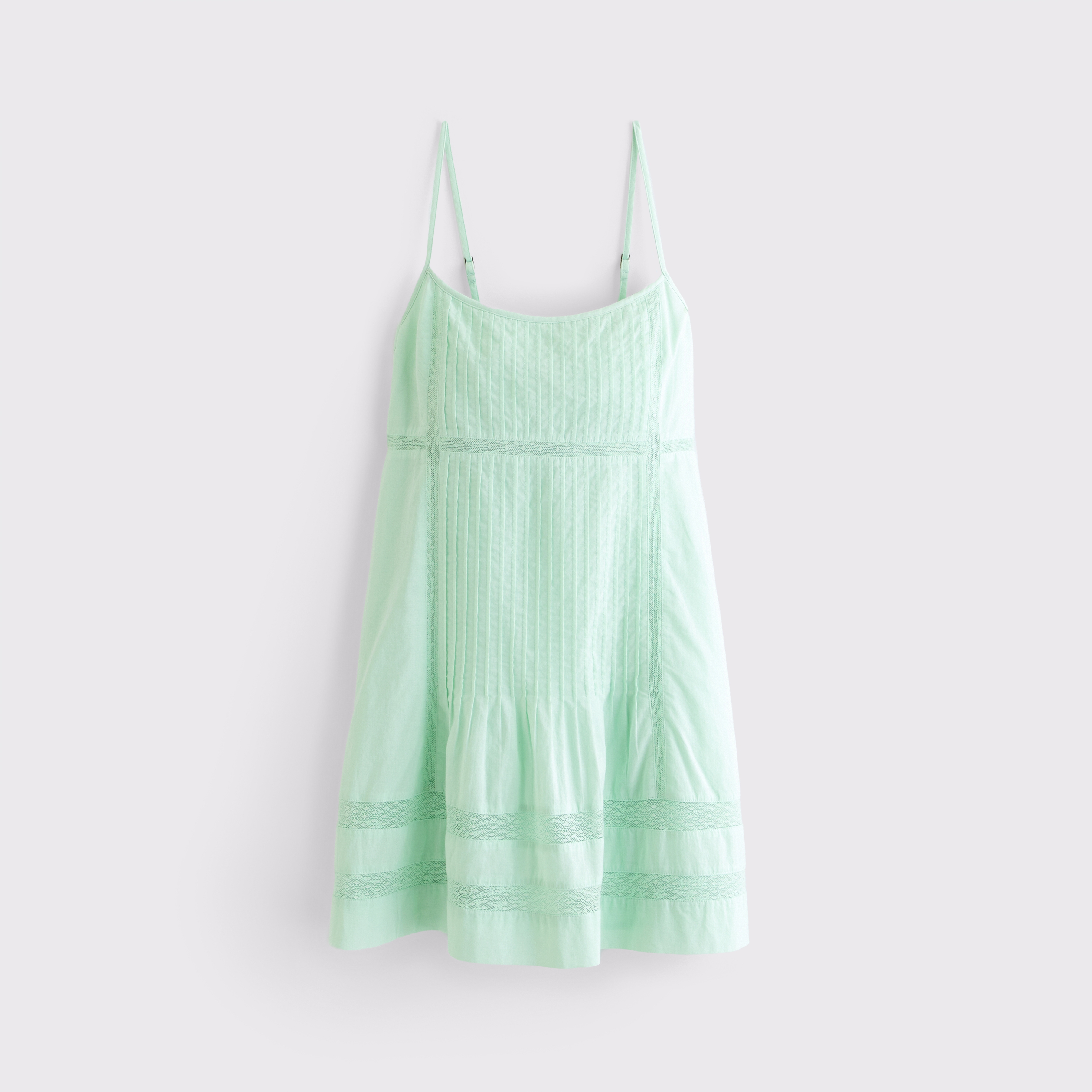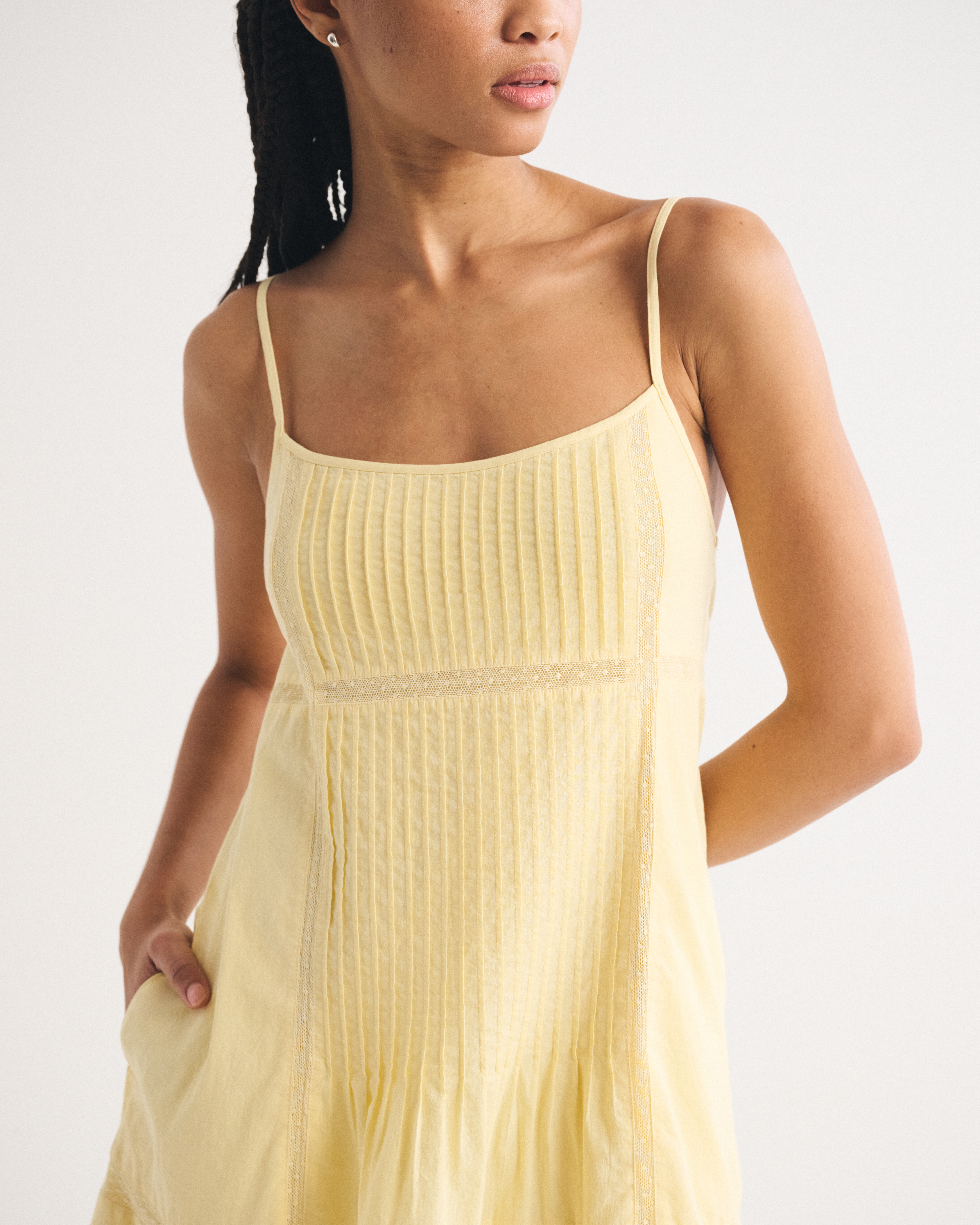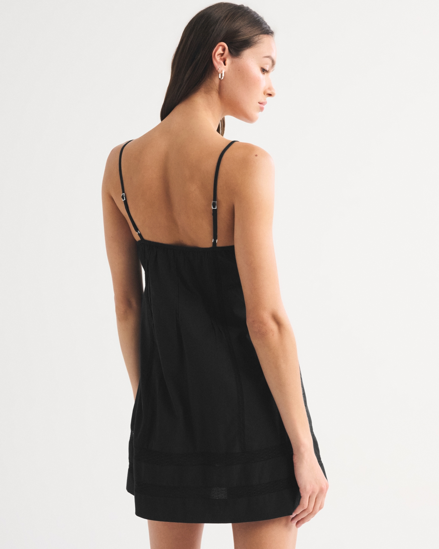 Easy-fitting mini dress in our soft cotton fabric and trapeze silhouette. Features a scoop neckline, seaming details, pockets and a flowy skirt. Imported.