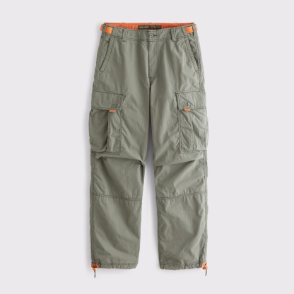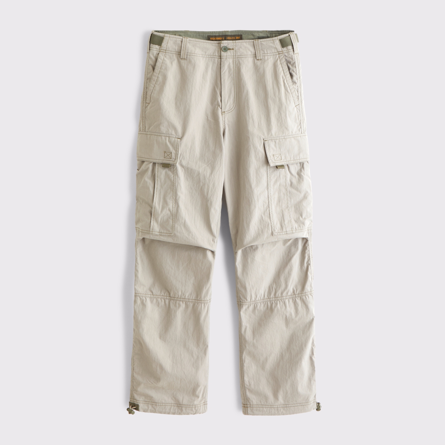 Our comfortable pants in a nylon cotton-blend fabric and baggy-fit silhouette. Features a utility-inspired adjustable belt, a fixed waistband, knee seaming details, adjustable bungees at the hem and pockets throughout. Imported.