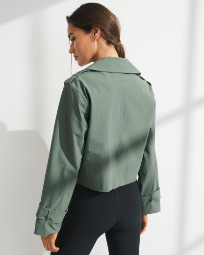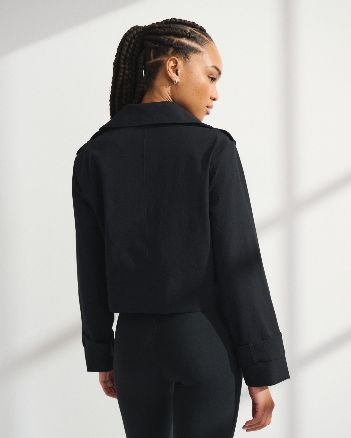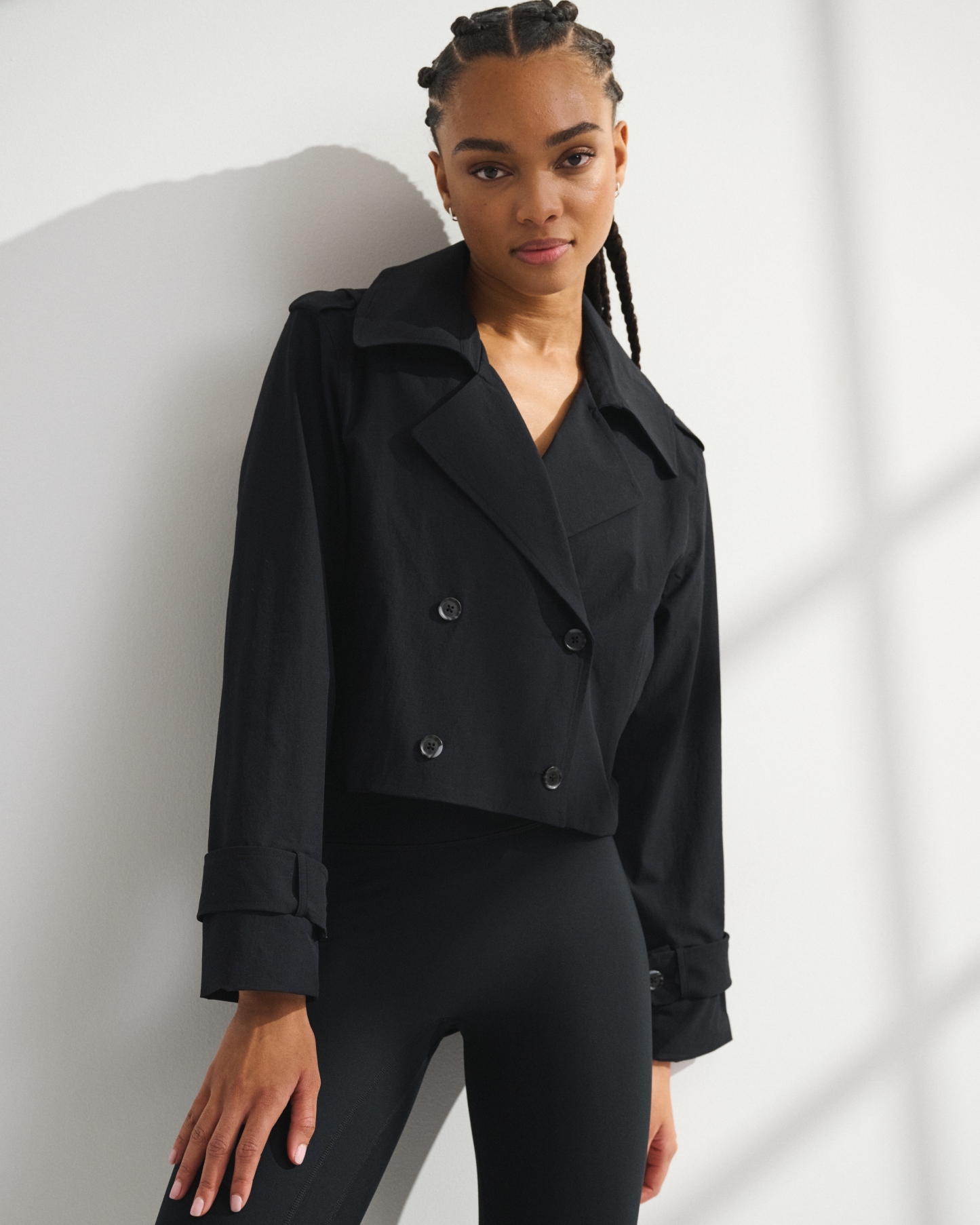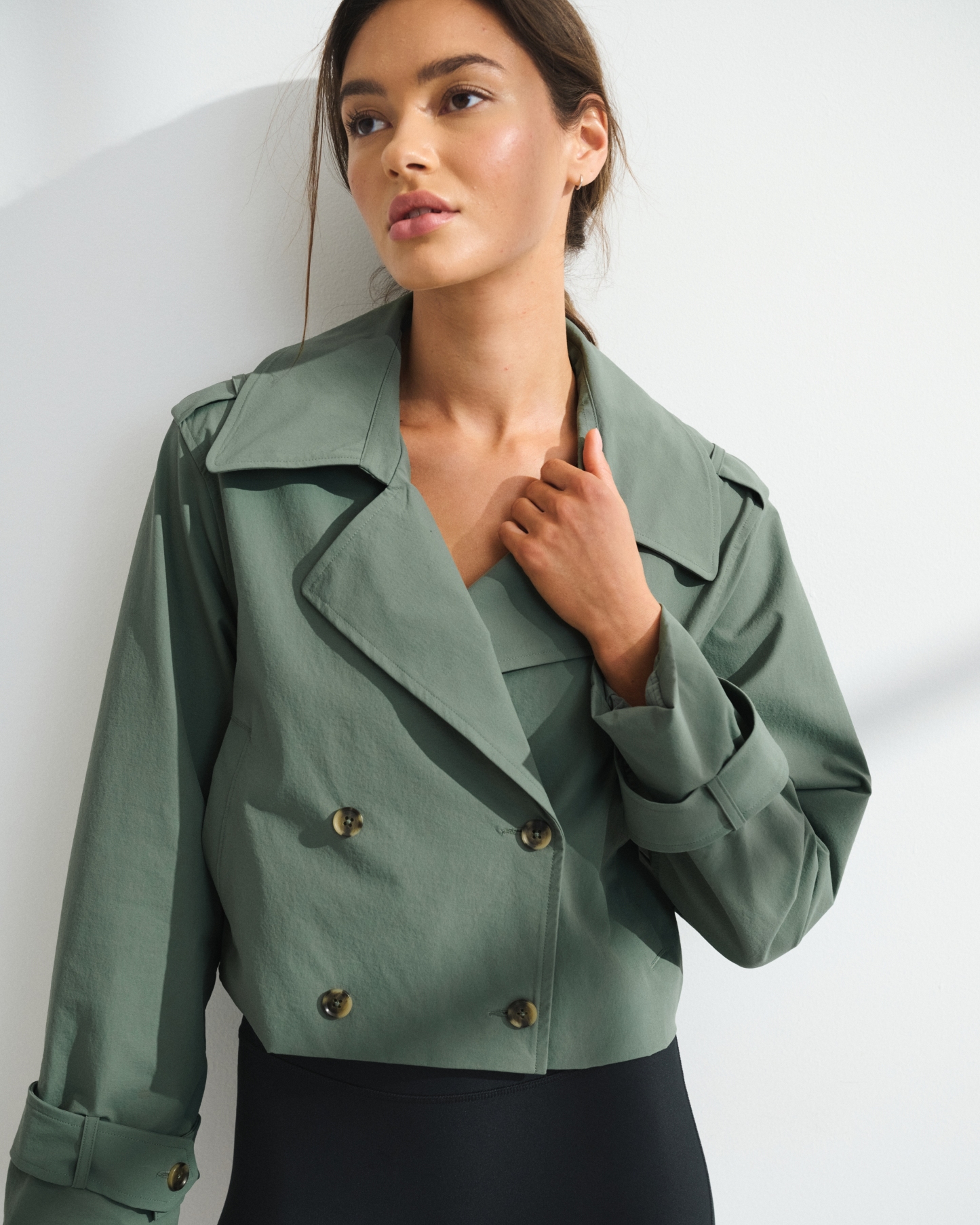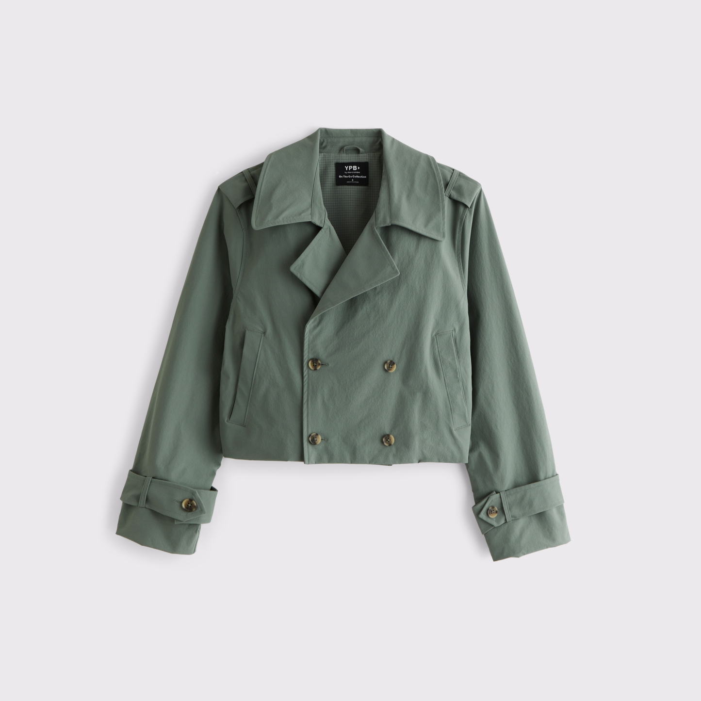 YPB On The Go Collection: Made to move—easy layers for walks, weekend trips and everything in between. This active trench coat is in our crinkle nylon active fabric and classic-fit silhouette. Features a cropped length, interior lining, a double-breasted collar and side pockets. Imported.