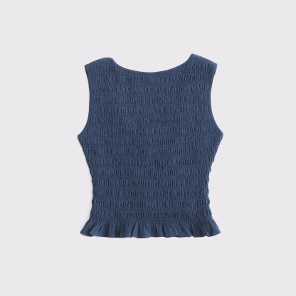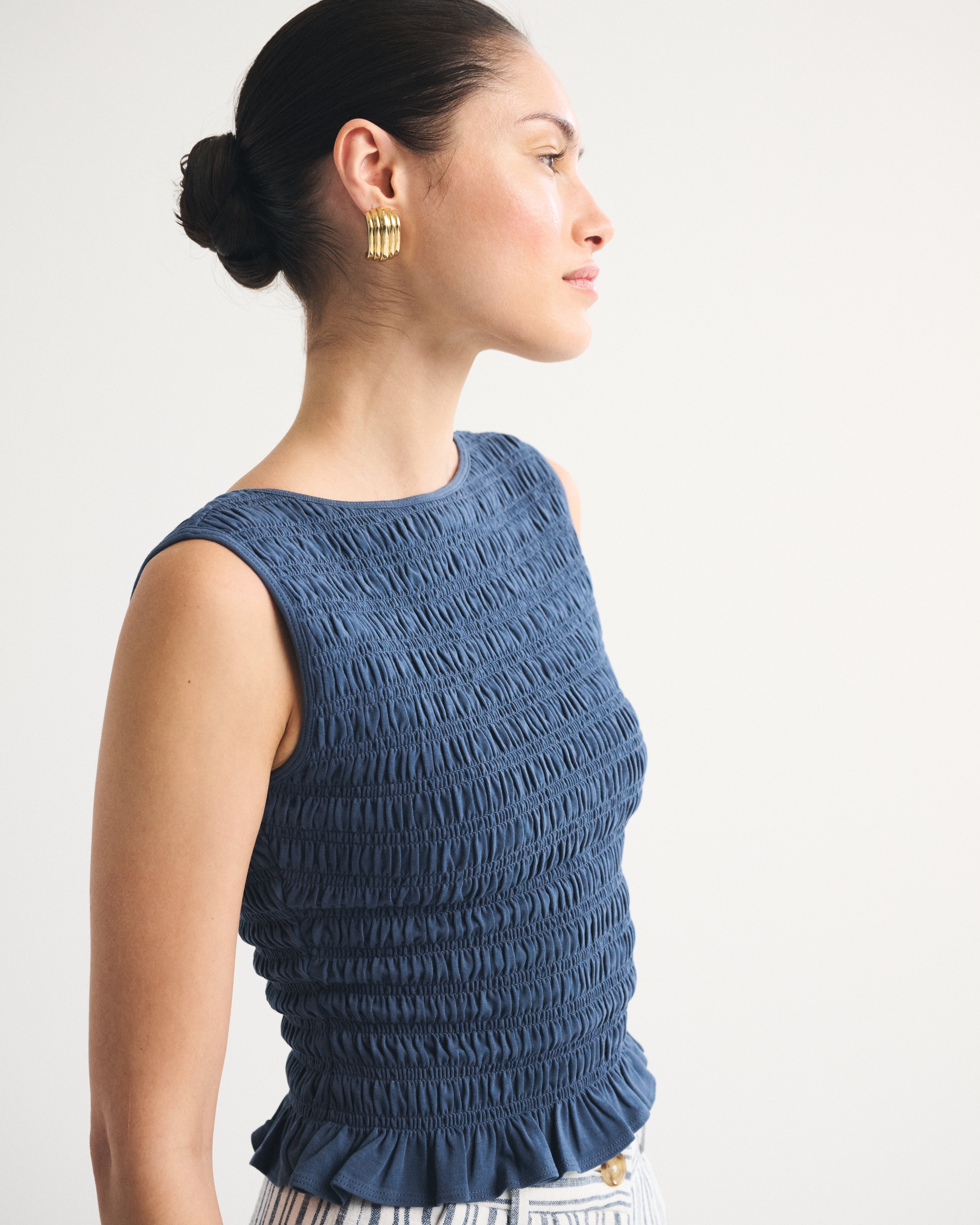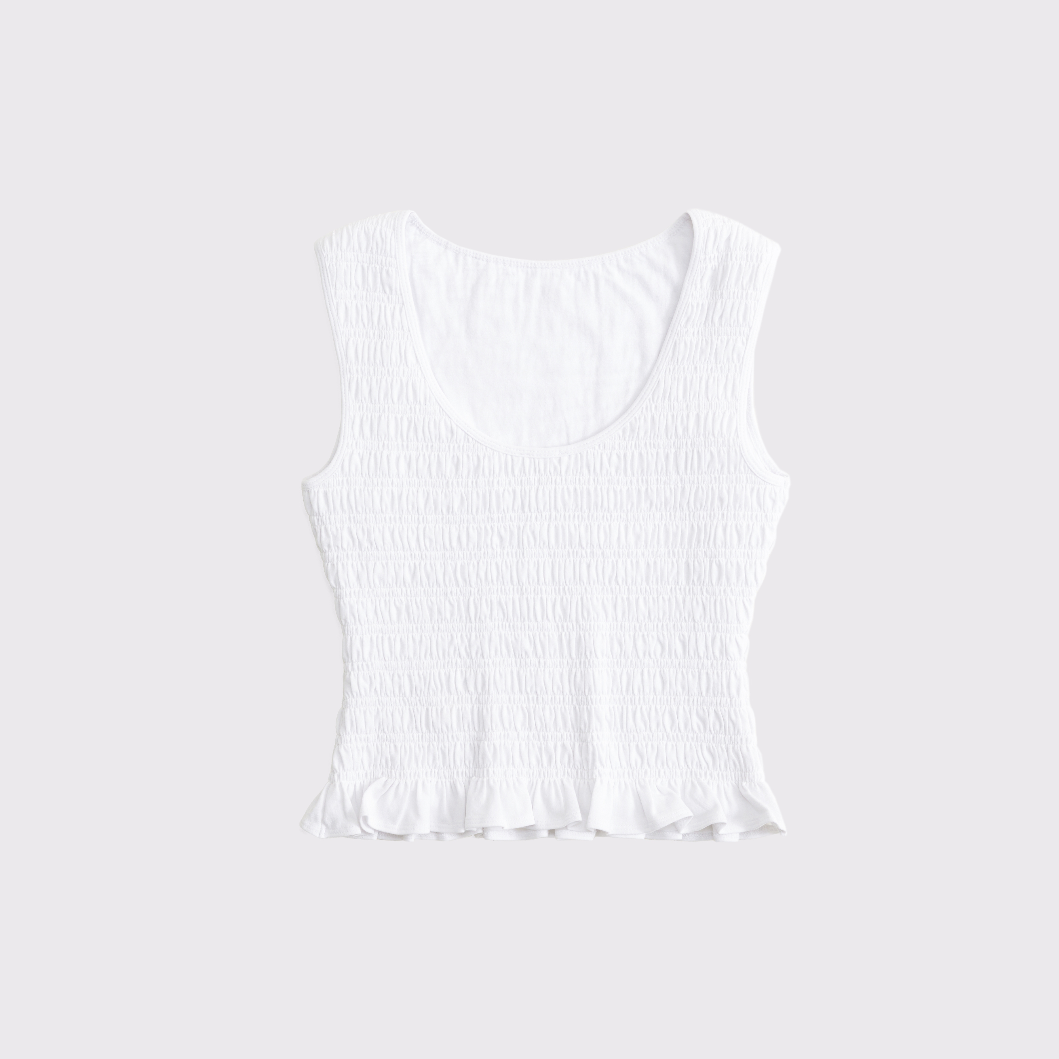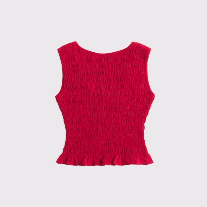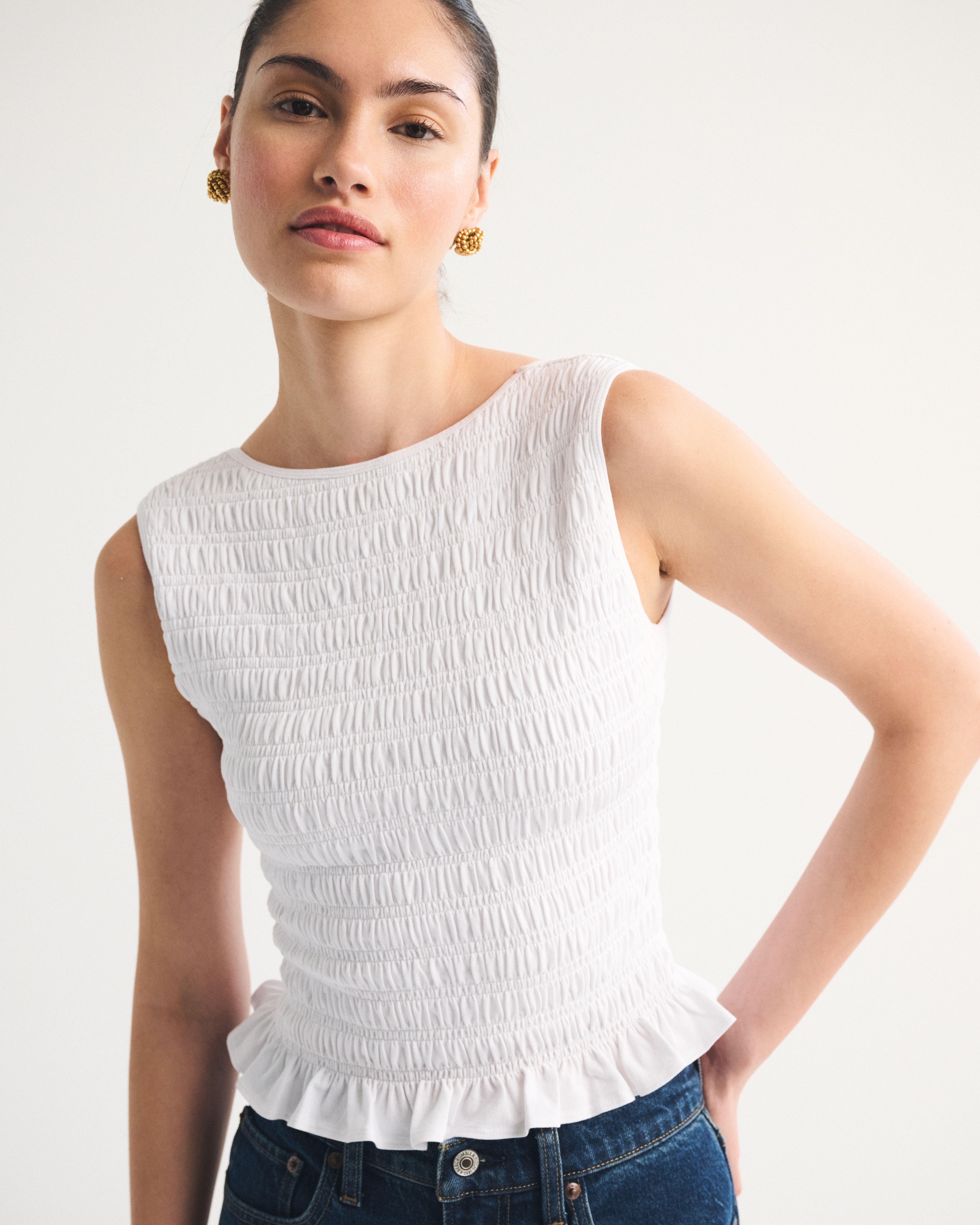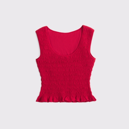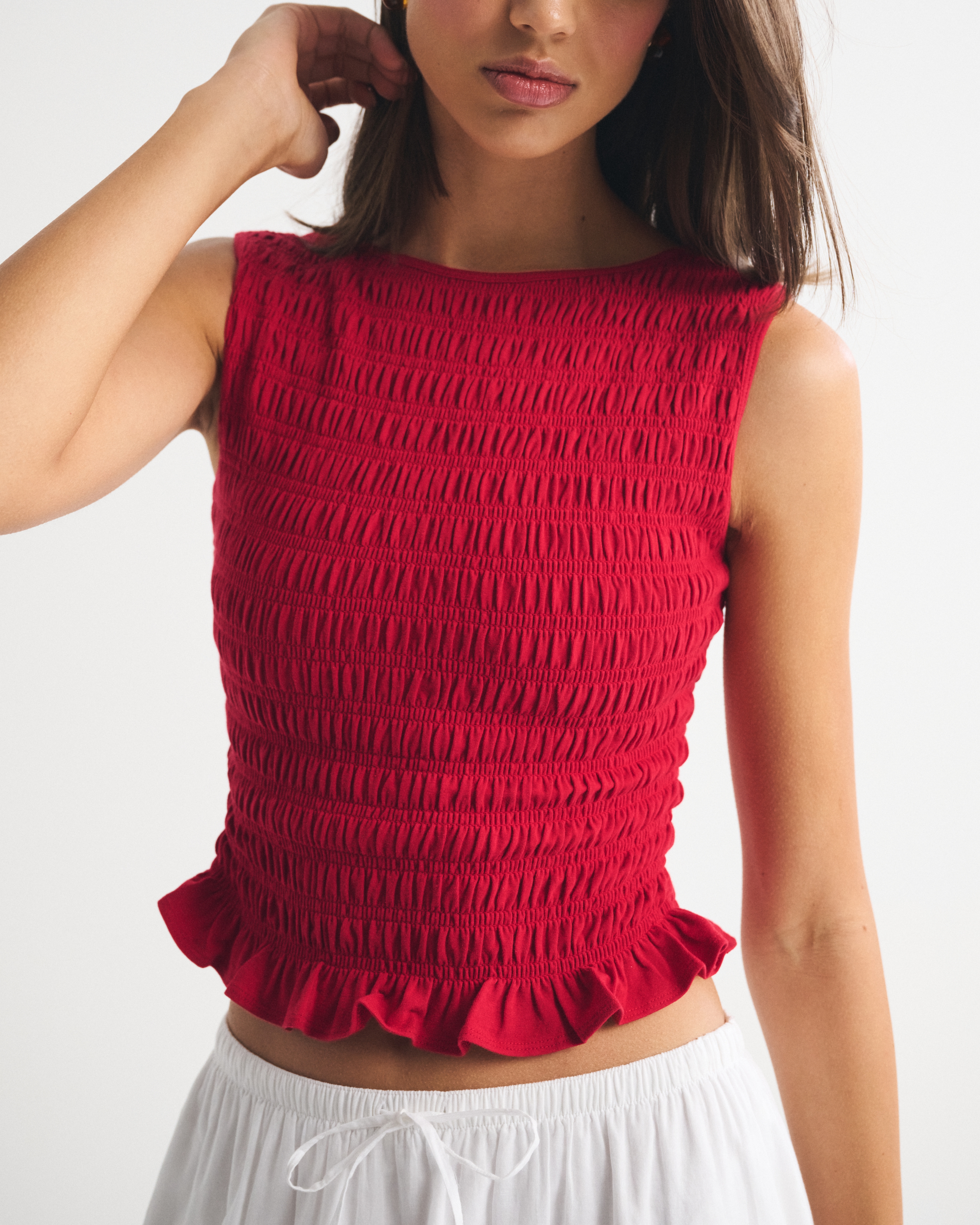 Slim-fitting shell top in our softAF cotton-blend seamless fabric, with all-over smocking details along the bodice. This reversible top offers a scoop neckline on one side and a slash neckline on the other when turned front to back. Imported.